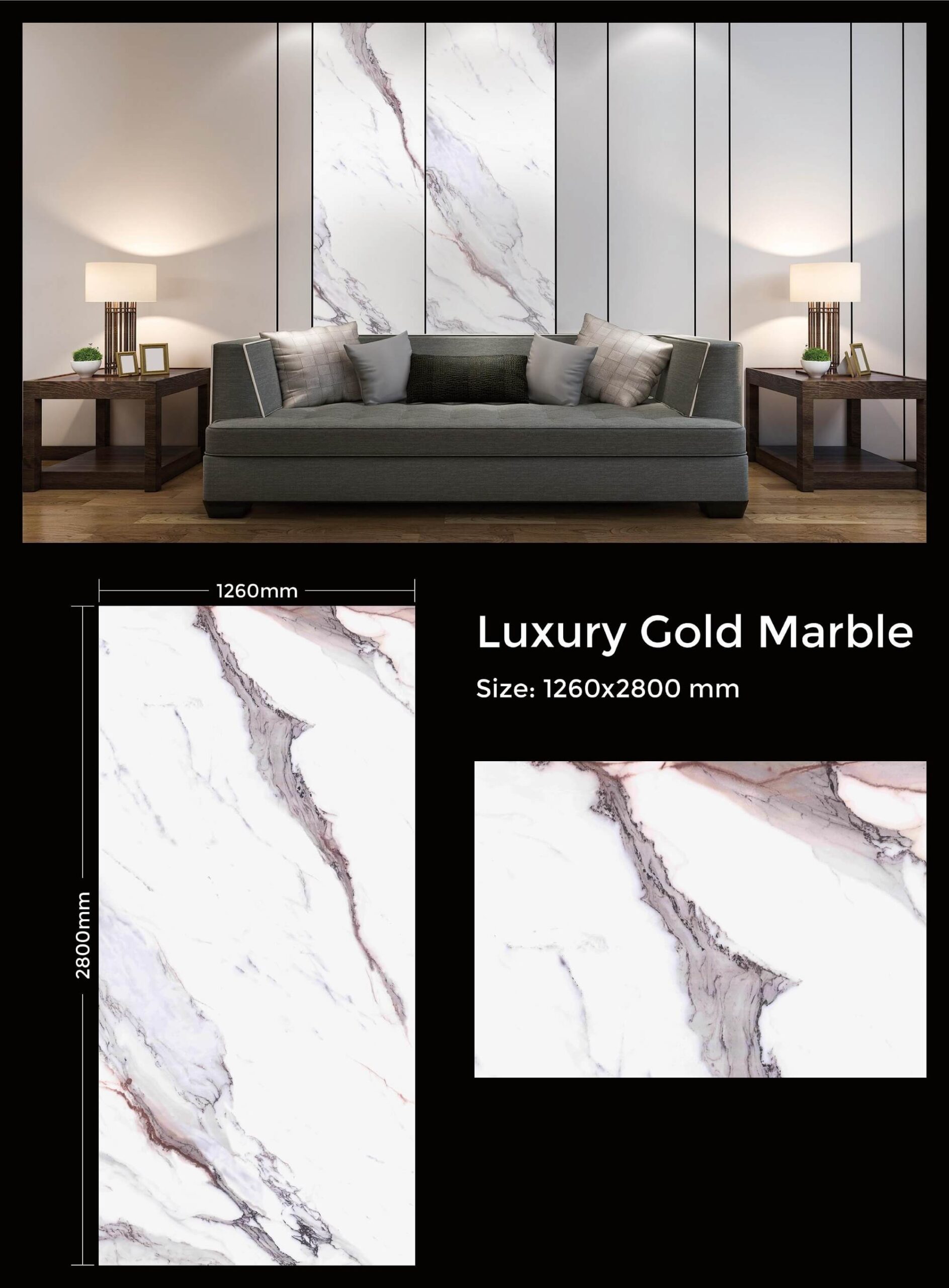 - Large Format Sheets: Designed for a seamless, dramatic look, each panel is sized at approximately 1260mm x 2800mm (or 1220mm x 2800mm for the 2.8MM thick option).